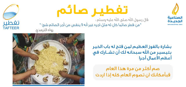 مكتب جاليات الصناعية الجديدة يقومون بتفطير 15000 خمسة عشر ألف صائم يوميا