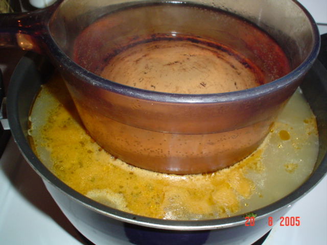 - يُترك قالب الكنافة ليبرد قليلاً (مع عدم خروجه من القالب)، ثم يُسقى بنصف كمية القهوة.