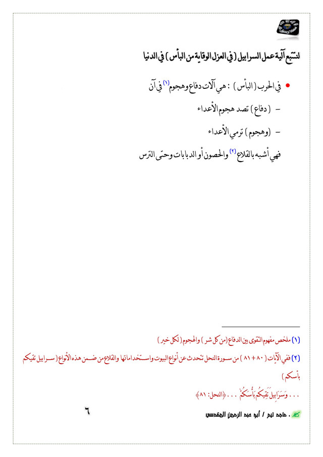 ([6]) ملخص مفهوم التقوى بين الدفاع (من كل شر ) والهجوم ( لكل خير )