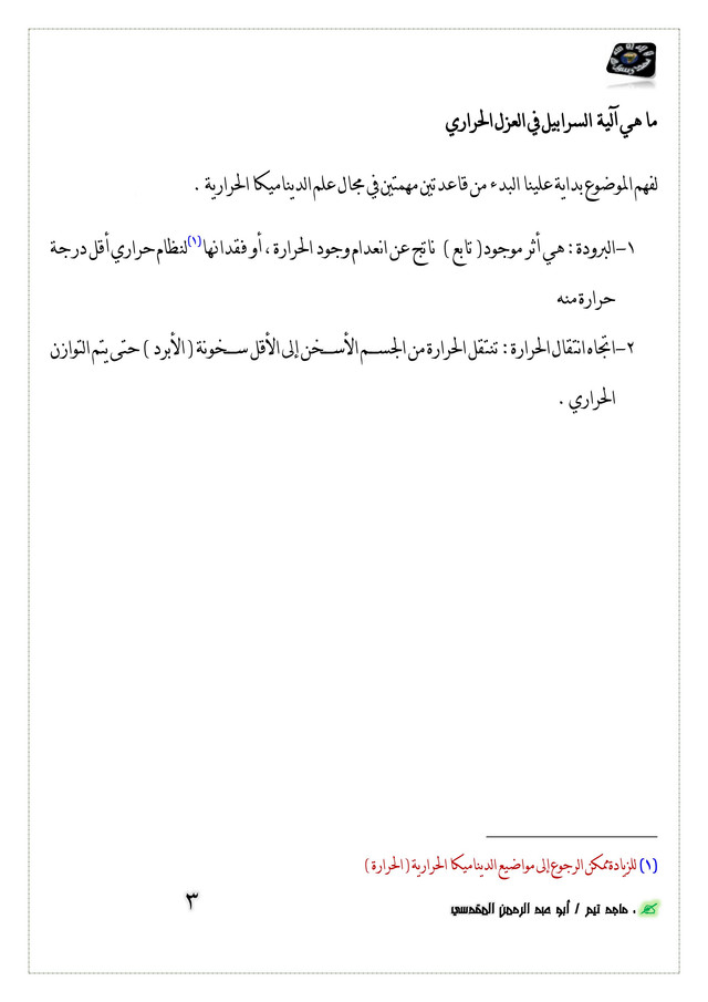 ([2]) للزيادة ممكن الرجوع إلى مواضيع الديناميكا الحرارية ( الحرارة )