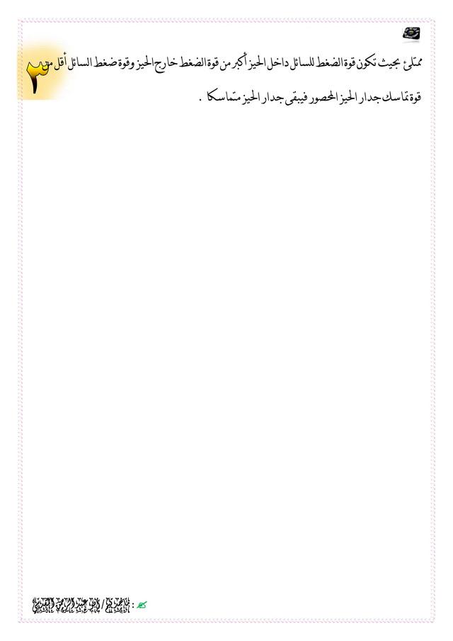 - الضغط الناشئ عن امتلاء السائل في الحيز المحصور و القوة الدافعة للسائل لخارج الحيز طرديا