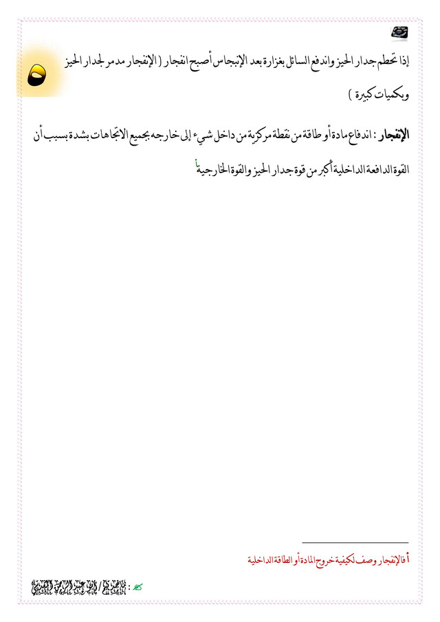[‌ه] فالإنفجار وصف لكيفية خروج المادة أو الطاقة الداخلية