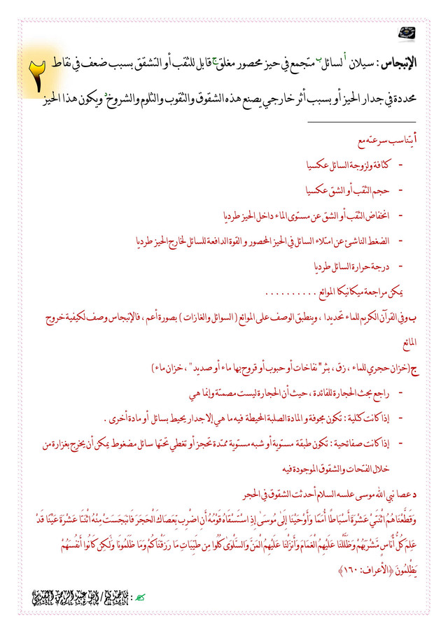 [‌ب] وفي القرآن الكريم للماء تحديدا ، وينطبق الوصف على الموائع ( السوائل والغازات ) بصورة أعم ، فالإنبجاس وصف لكيفية خروج المائع