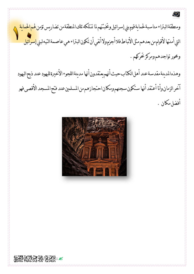 ومنطقة البتراء مناسبة لحماية قوم بني إسرائيل وتخبئتهم لما تمتلكه تلك المنطقة من تضاريس تؤمن لهم الحماية التي أمنتها لأقوام من بعدهم مثل الأنباط فلا أجزم ولا أنفي أن تكون البتراء هي عاصمة التيه لبني إسرائيل ومحور تواجدهم ومركز تحركهم .